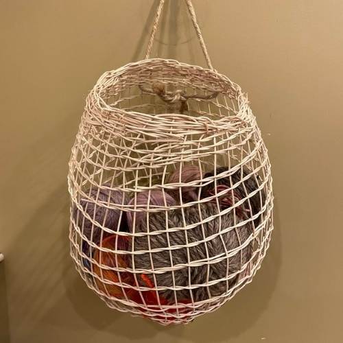 Learn a basic twining technique to weave an open, flexible basket out of #1 round reed. This basket would be perfect to store yarn or display light materials hanging from a hook or nail. While most participants will finish their baskets during this 4-hour class, those who don’t will leave with the knowledge and enough materials to complete their project at home. Completed baskets will measure approximately 1 ft high by 10 inches wide.