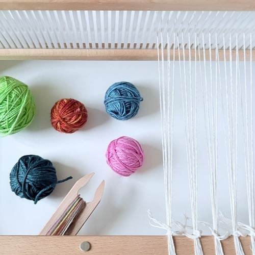 Participants will work on pre-warped rigid heddle looms (so the looms are already set up and you’ll get weaving right away) and will use colorful wool yarns to create their first weaving project: a weft-faced mug rug. When complete, mug rugs will be approximately 5″ x 5″.