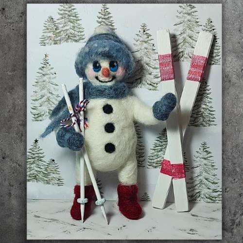 Enjoy learning basic needle felting techniques as we create a snowy friend who is full of charm and ready to hit the slopes. Your instructor will demonstrate how to make basic shapes for the body and how wire can be used to make your creation possible. We’ll complete our projects with pre-painted skis and poles.
