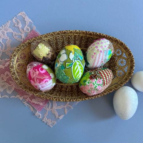 Bring a lovely handmade touch to your springtime decor this season; display on a tablescape, in a ceramic bowl or basket, or in an antique egg holder. All supplies are included, but feel free to bring any of your own fabric scraps. Ideas for fabric prints include florals, plants, bunnies, bright colors and pastels.