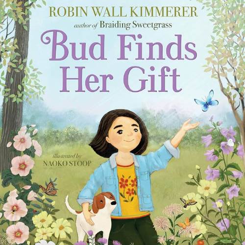 Bud Finds Her Gift is a children’s picture book by renowned author and Indigenous ecologist Dr. Robin Wall Kimmerer, illustrated by Naoko Stoop, that explores themes of gratitude, reciprocity, and finding one’s place in the natural world. The story follows a young Native American girl named Bud who feels she lacks a special gift like her family, until her grandmother (Nokomis) teaches her to find belonging by observing and giving thanks for the gifts of the Earth, realizing her own gift is to notice and appreciate the world around her.