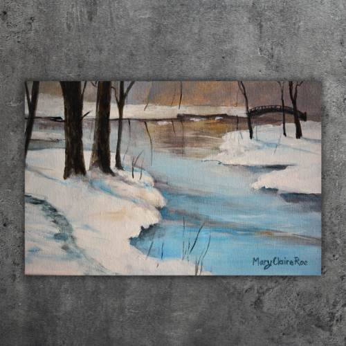 Discover your inner artist and learn how to paint a winter pond with a foot bridge in this hands-on, fun and friendly class. We’ll use various colors, brushes, tools, and techniques as we learn the stages of building an acrylic painting from start to finish. No experience is necessary, and all supplies are included for you to create an 11” x 14” painting in a relaxing atmosphere.