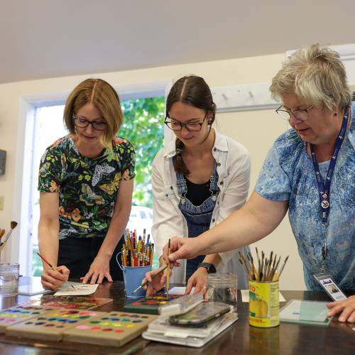 The class begins with Bennett, who will guide you through the simple process of transferring your house image onto watercolor paper. You’ll start with some practice exercises before learning how to enhance the unique details of your house using an ink pen. Next, Connie will walk you through simple watercolor techniques, helping you bring your house to life with washes of color. She’ll provide plenty of support as you add color and character to your artwork, ensuring a beautiful result.