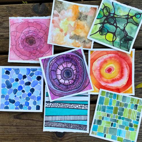 In the first part of class, we’ll get familiar with watercolors and simple painting techniques. The second part of class is reserved for quiet work time. Gentle music will encourage the mind to rest, as participants use their favorite new skills in the colors of their choice to create three (3) 5″ by 5″ paintings.