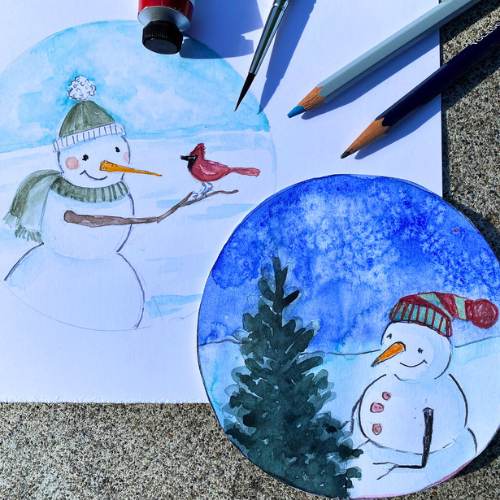 Enjoy exploring simple watercolor techniques in a relaxed and supportive environment as we learn how to paint snowy friends in a wintry landscape. No drawing or painting skills needed! We’ll use simple practice exercises to get familiar with watercolor paints, learn how to transfer pre-drawn images onto our paper, and have fun personalizing and creating our own whimsical paintings.